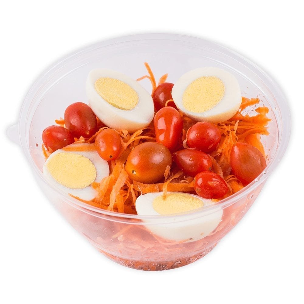 Sencilla y colorida, de texturas variadas, desde lo suave de los huevos, al dulzor de la zanahoria hasta los jugosos tomates.